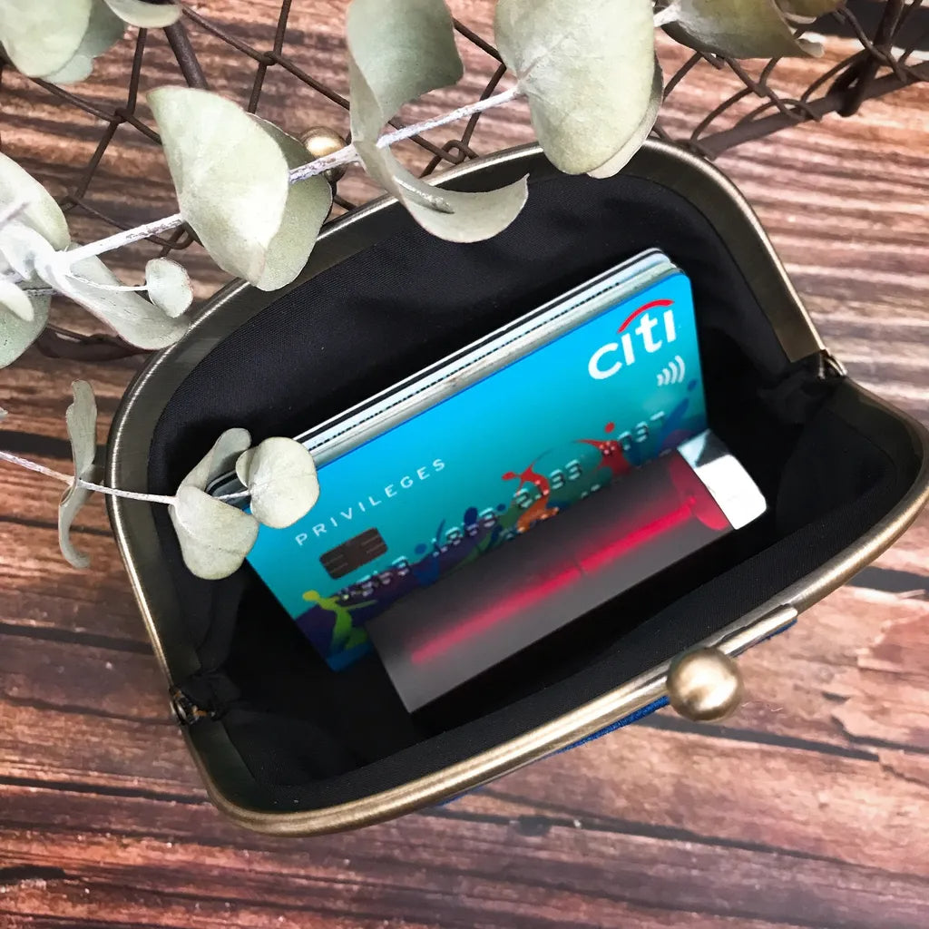 Discover our elegant clutch, beautifully adorned with intricate floral and butterfly embroidery. The luxurious black fabric is complemented by a stunning gold frame, creating a perfect balance of sophistication and artistry. Ideal for formal occasions, this clutch adds a touch of glamour to any outfit. Embrace timeless elegance with this exquisite accessory.